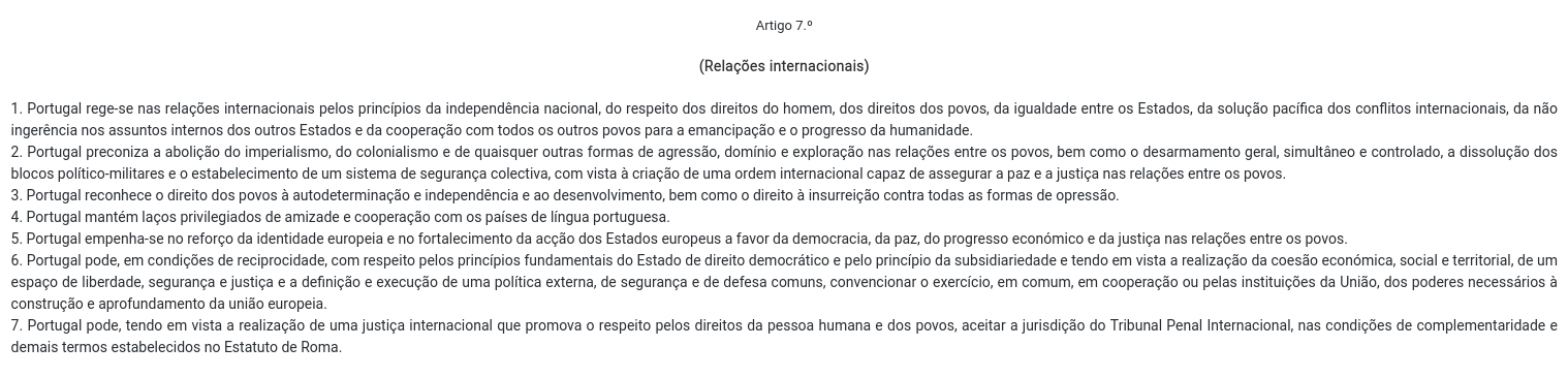 Para que não fique esquecido porque razão existe na Constituição Portuguesa um artigo 7º que apela à paz, à defesa e autodeterminação dos povos.